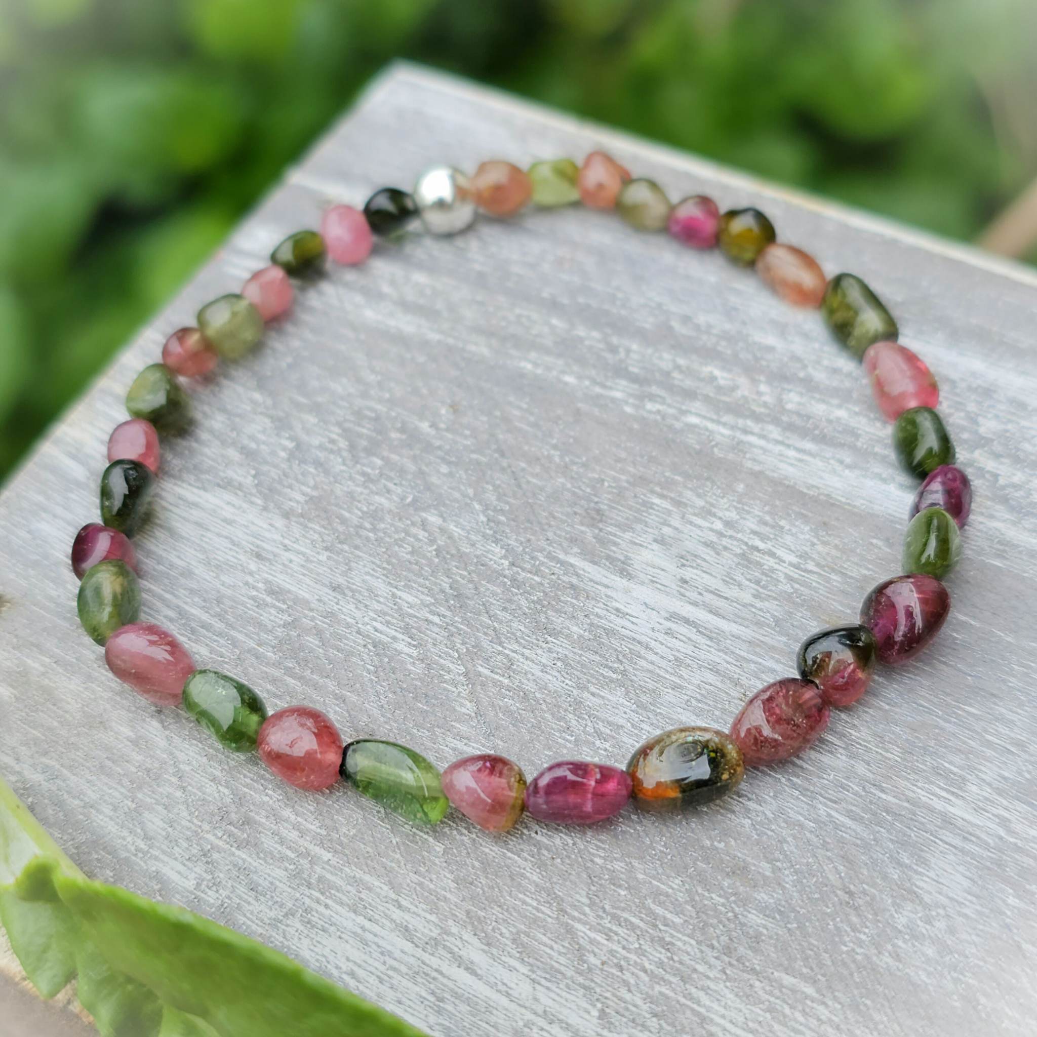 Karkötő dobcsiszolt Turmalin szemekből, 1 db orvosi acél gyönggyel.