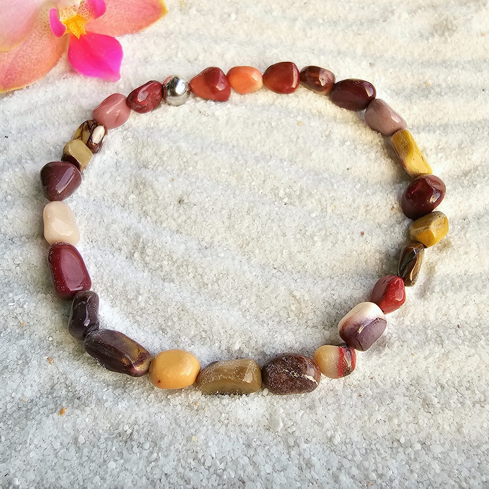 Mookait karkötő dobcsiszolt szemekből, 1 db orvosi acél gyönggyel.